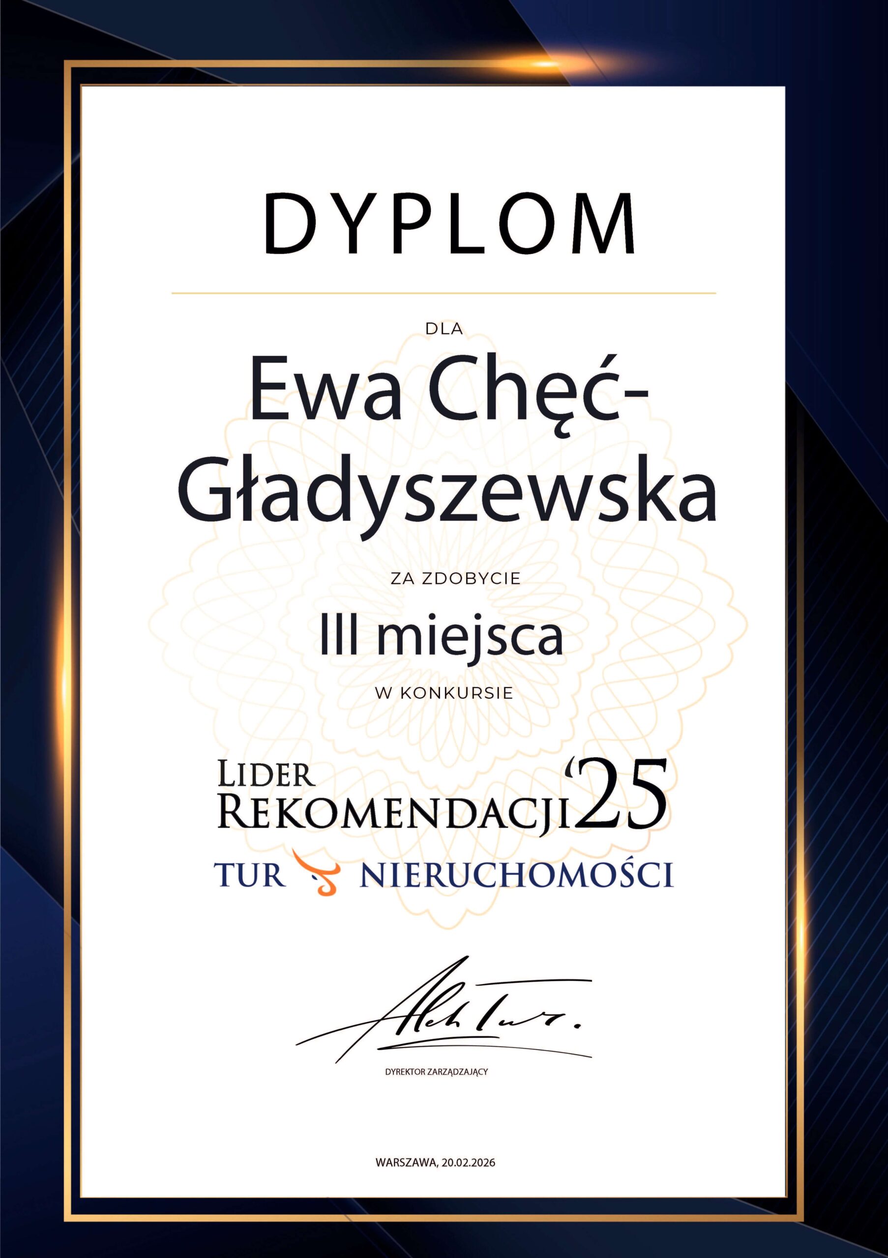 P. Ewa Chęć – Gładyszewska pośredniczyła w sprzedaży mojej działki rekreacyjno – budowlanej w Zakrzewie (gm. Grabów nad Pilicą). W wyniku jej dużego zaangażowania, sumienności i dbałości o różne aspekty tej sprawy doprowadziła do finalizacji transakcji. Z pełnym przekonaniem rekomenduję p. Ewę Chęć – Gładyszewską jako odpowiedzialną pośredniczkę w obrocie nieruchomościami.