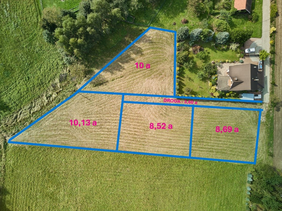 To działka dla tych którzy lubią przestrzeń nie ma tam dużego nagromadzenia domów i zwartej zabudowy. W sumie można zakupić 64 ary w tym 24 budowlanego terenu i 30 arów działki rolnej.