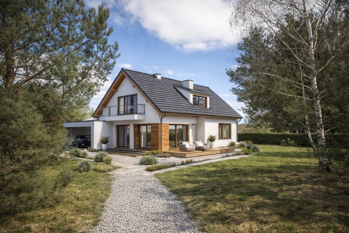 spokojnym, zielonym otoczeniu, z dala od miejskiego zgiełku, a jednocześnie z dogodnym dostępem do infrastruktury. W odległości około 25 km od centrum Warszawy, co pozwala cieszyć się spokojem natury, nie rezygnując z łatwego dostępu do miejskich udogodnień.