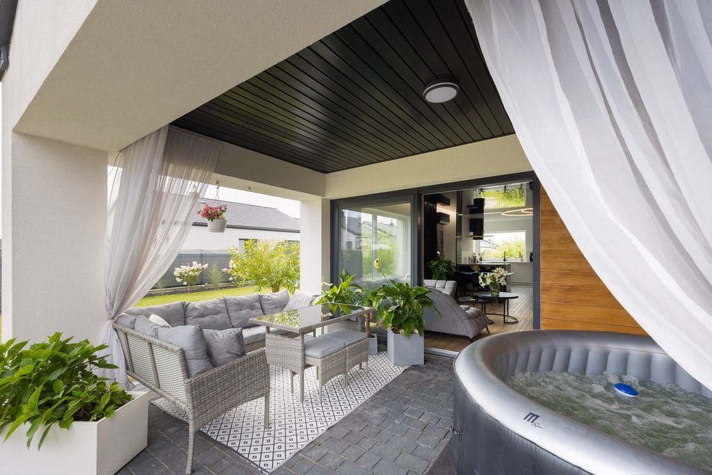 • Salon z panoramicznymi przeszkleniami,
